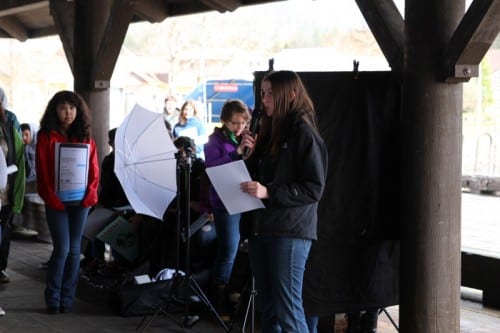 The Choose Respect March is a statewide initiative to combat Alaska’s high rates of sexual assault and domestic violence. In Sitka, the march ended in speeches by student activists. (Emily Kwong/KCAW photo)