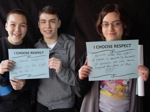 “I Choose Respect because…” is a new campaign by Sitkans Against Family Violence. Students wrote down their reason and posed for a photo. (Emily Kwong/KCAW photo)