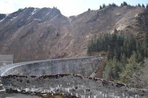 The draft capital budget includes $3 million for additional treatment of water from Juneau’s Salmon Creek Reservoir, held back by this dam. (Casey Kelly/KTOO)