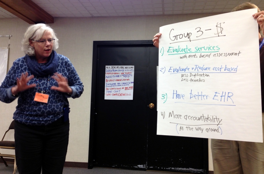 Not surprisingly, electronic health records were high on the list in the “needs improvement group,” facilitated by Lily Herwald and Kat Richards. Other items that came out of this table included internal and external communication, and collaboration with other providers.