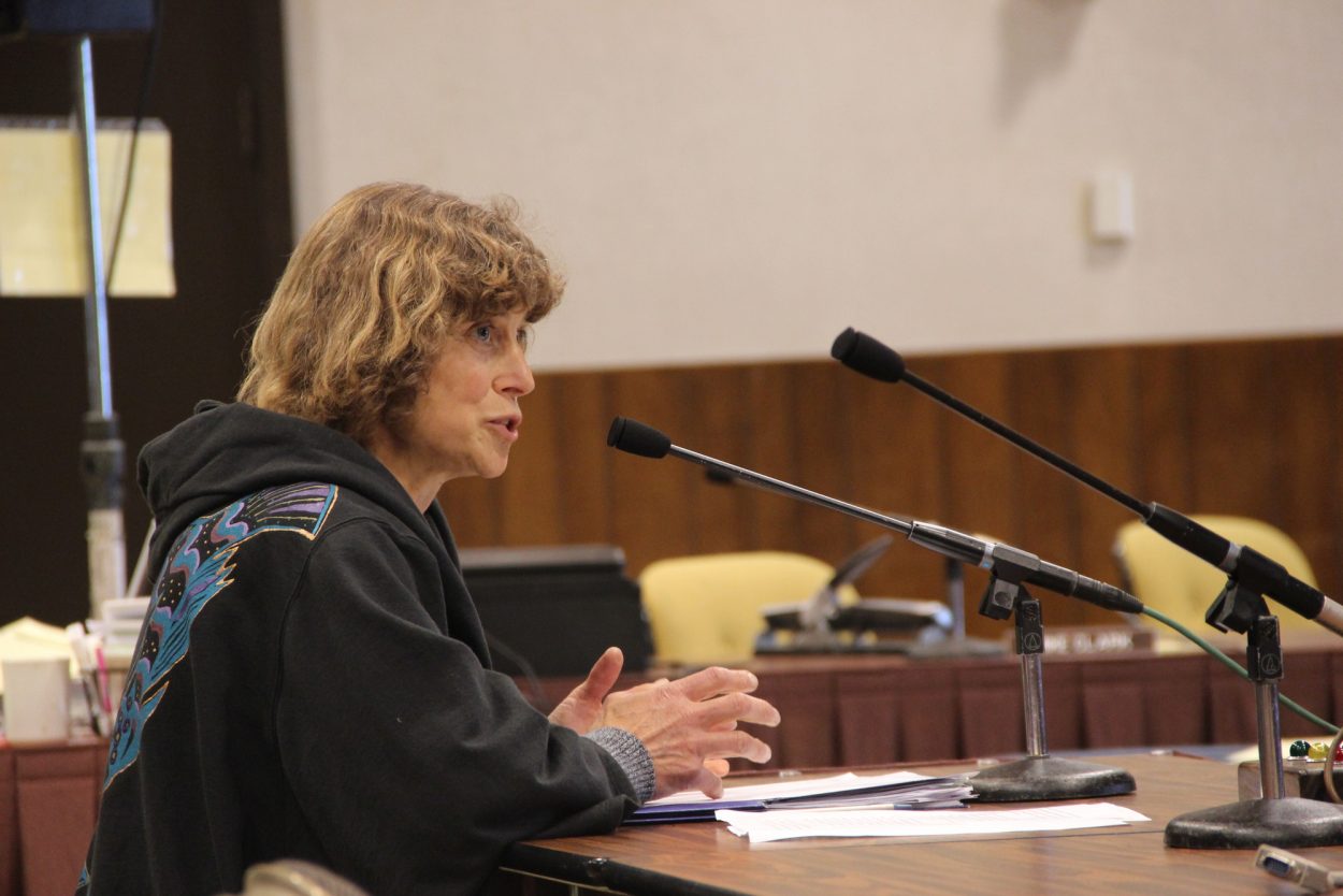 Linda Behnken, head of the Alaska Longline Fishermen’s Association, testified before the council on Saturday. (Rachel Waldholz, KCAW)