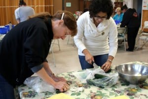 Pickling in Lewis’ classes are a team effort. Next to Rubio is Sitka resident Charlotte Candelaria, who’s prepping the pickling solution.