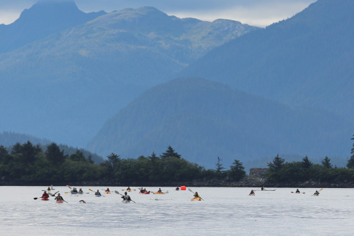 Swimmers take to the open waters of Sitka Sound, in an annual race that benefits the Baranof Barracuda Swim Club. (Courtesy of changeyourlatitude.org)