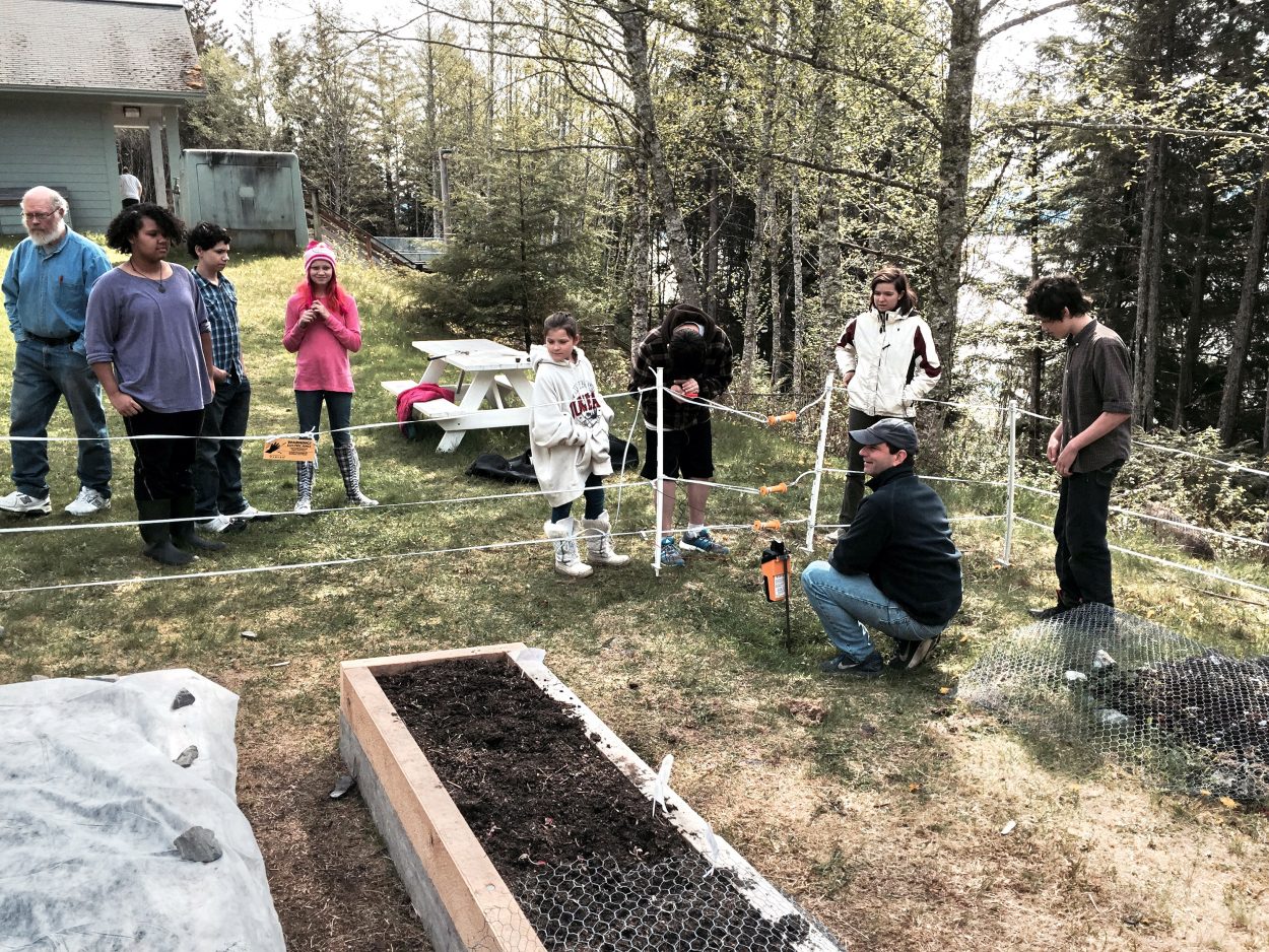 This spring in Tenakee, the Alaska Department of Fish & Game showed locals how to set up a portable electric fence around the school’s community garden. (Photo courtesy of Phil Mooney)
