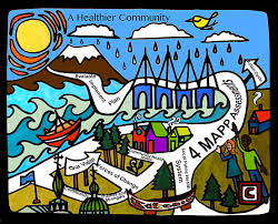 Sitka Health Summit partners, Martha Pearson (SEARHC) and Zachary Desmond (Brave Heart Volunteers) discuss the recently-completed MAPP (Mobilizing for Action through Planning and Partnerships) Community Health Assessment.