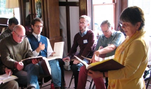 Singers at the The Eight Annual Alaska Sacred Harp Convention run through songs Oct. 24 at the See House at Sitka’s St. Peter’s by-the-Sea Episcopal Church. (Ed Schoenfeld/CoastAlaska News)