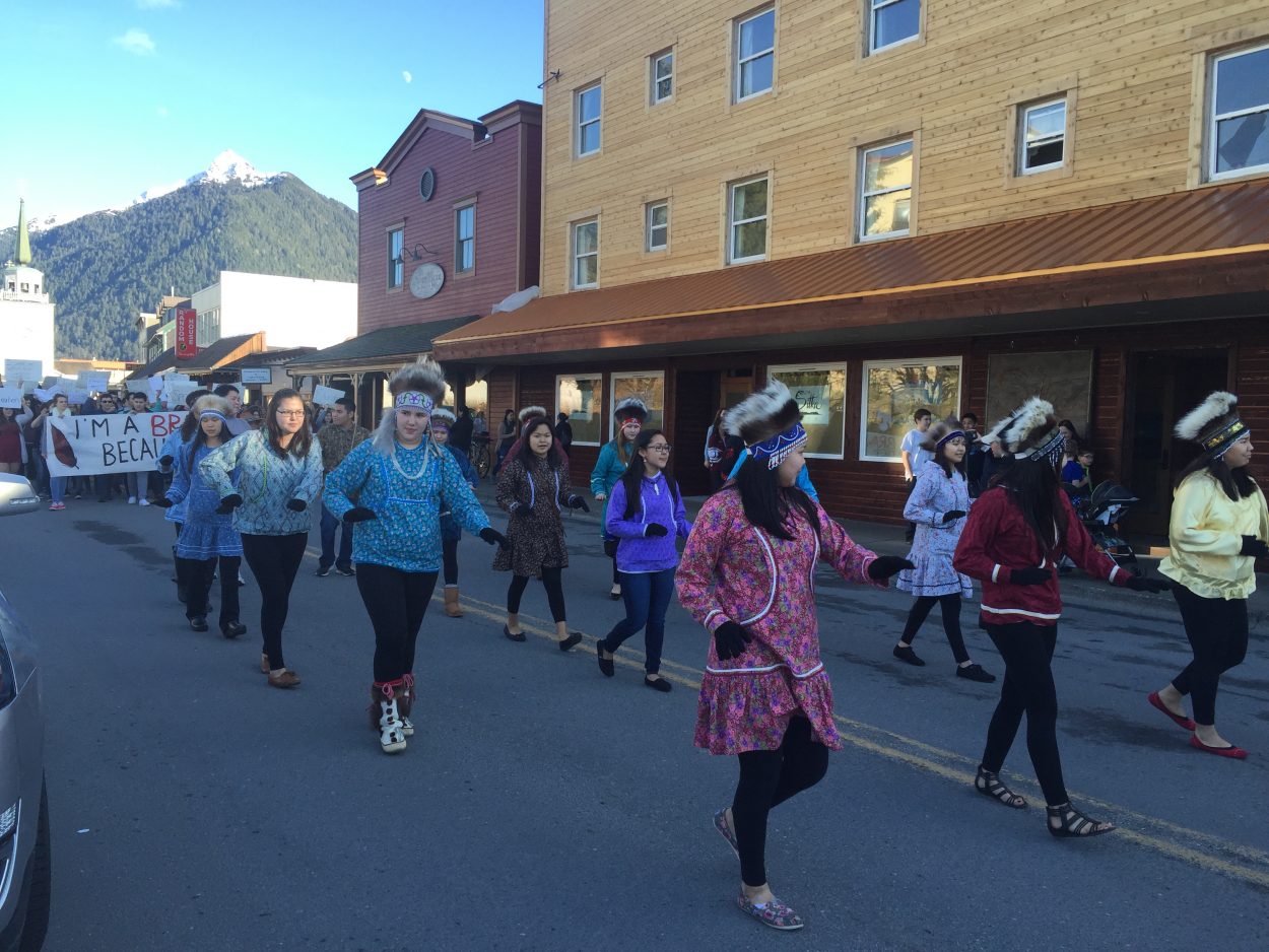 Sitka marked Elizabeth Peratrovich day Tuesday (2-16-16) with a parade and then performances at the Alaska Native Brotherhood Founders Hall. Students got out of school early and some workers had a day off in observance of the Native Alaskan civil rights leader. KCAW’s Brielle Schaeffer was at the festivities and sent this audio postcard.