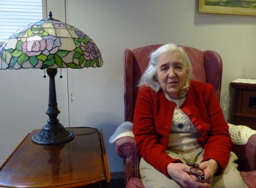 Illuminated by a stained-glass lamp, Spartz chats about aging in the city that’s been home for most of her life.