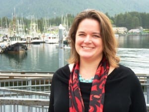 Meilani Schijvens of Rain Coast Data stands by Sitka’s Crescent Harbor. She’s been tracking demographic changes in Southeast. (Ed Schoenfeld/CoastAlaska News)