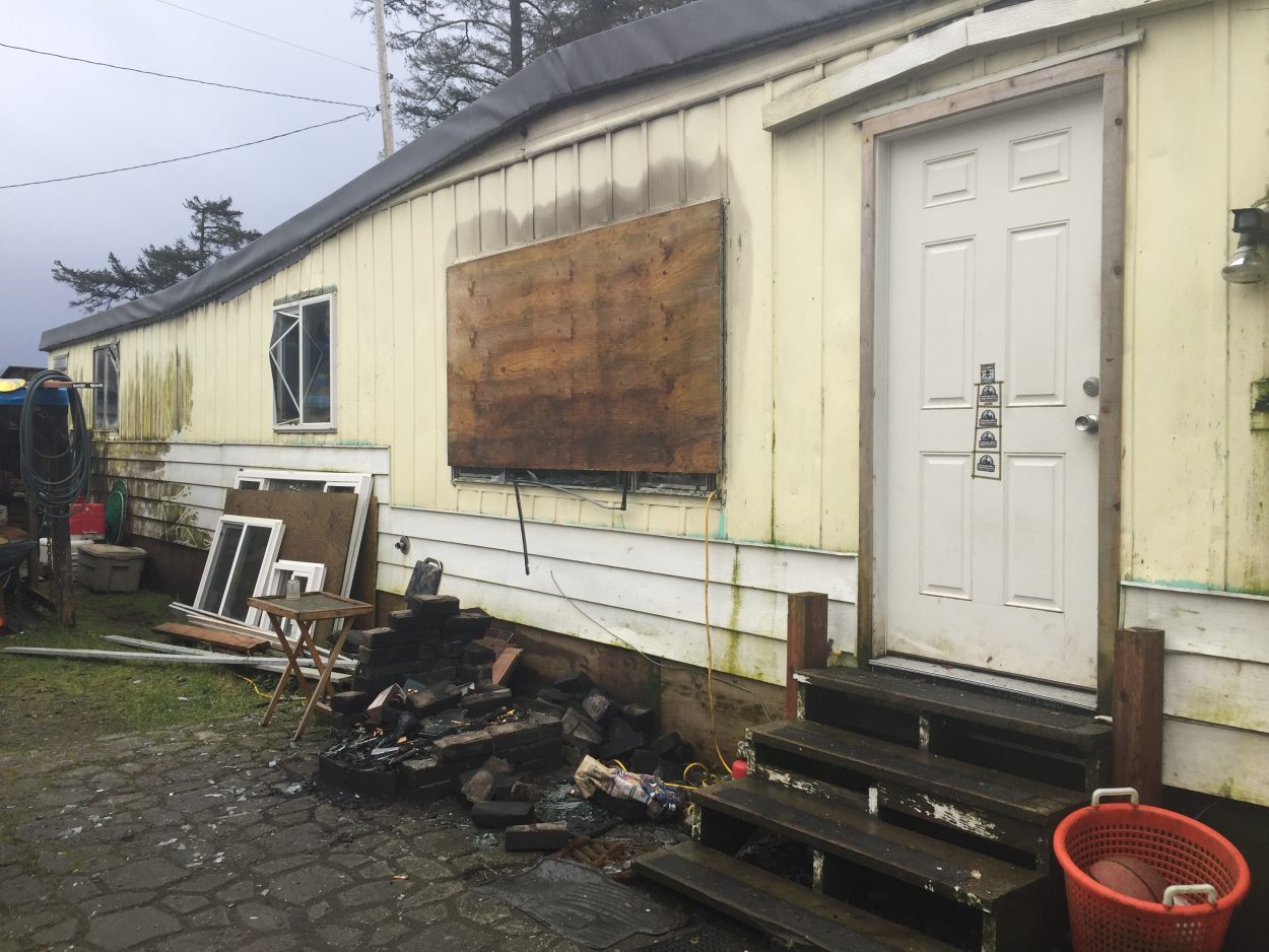 The mobile house fire began in the back bedroom, due to faulty electrical wiring that quickly spread along the ceiling. (Emily Kwong/KCAW photo)