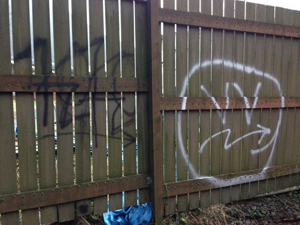 While some of the graffiti applied with felt-tip marker was easily removed by park maintenance staff, some wooden surfaces — a fence and a restroom — were spray-painted. Ewers believes the damage totals around $1,600.