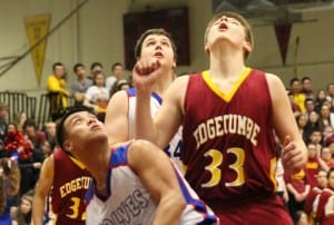 Despite coming up short in the score, the MEHS Braves dominated the offensive boards in the championship game. (KCAW photo/Robert Woolsey)