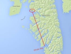The whale was first seen about 40 miles southeast of Sitka in Whale Bay. (KCAW image)