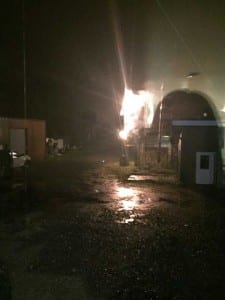 The outage was caused when a high-voltage insulated bushing failed during the evening rainstorm. This generated a small fire on the electric pole. (Photo courtesy of Scott Wagner, NSRAA Operations Manager)