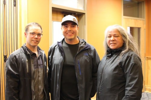 Kevin Knox (L) and Aaron Bean (C) received congratulations from current School Board member Cass Pook (R). (Emily Kwong/KCAW photo)
