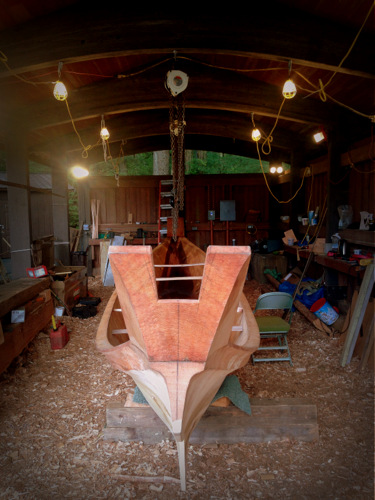 The canoe explained by more than 16 inches after the steaming. (KCAW Photo/Emily Russell)