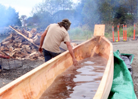 The idea, Joseph says, is to let the heat and pressure from the steam widen the canoe, making it sturdier.