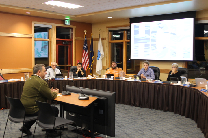 Utility Director Bryan Bertacchi addresses the Assembly on Tuesday night (10-11-16). The city is trying to figure out how to support the electric fund in light of declining electric usage in Sitka. (Emily Kwong/KCAW photo)
