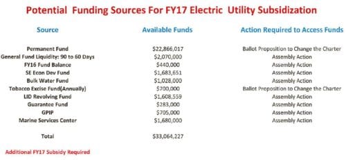 The Sitka Assembly is raising electric rates for the second time this year, by an average of 7% across the customer base. That will close the gap in the electric fund for FY17. But the relief is short-lived. To address future shortfalls, the Assembly wants to dip into other pockets in the city’s wallet before raising rates again.