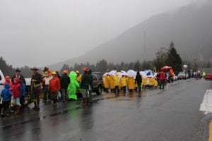 Marchers had to line up an hour before the start of the 2016 Alaska Day parade. (KCAW Photo/Emily Russell)
