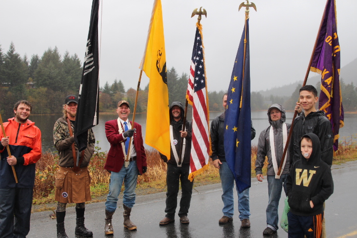 Members of the Elks Lodge at the 2016 Alaska Day parade. (KCAW Photo/Emily Russell)