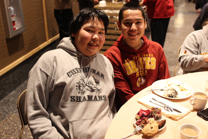 Wiseman is sitting next to his friend Christian Charlie. Charlie is also a student at Mt. Edgecumbe High School and is from Marshall, a village north of Chefornak on the Yukon River.