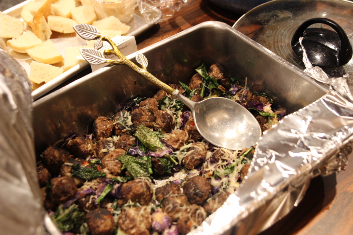 Trafton explains what she has so far: “A meatball, herring egg sushi– my family made it– some ribs, some venison stew, I’m not totally sure what that is, some mac ‘n cheese, pumpkin bread, and gnocchi,”