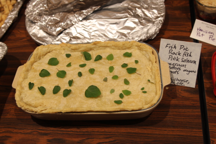 Fish pie, featuring rock fish, pink salmon, homegrown potatoes, and organic carrots. (Emily Russell/KCAW Photo)
