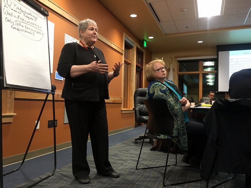 Attorney, and former Health and Social Services commissioner Myra Munson offered her views Tuesday night (11-28-16) before a roomful of health care providers at a joint work session of the Sitka Hospital Board and the Sitka Assembly.