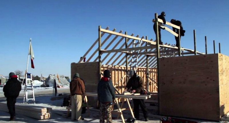 The Oceti Sakowin camp is winterizing as North Dakota is swept by blizzards and bitter cold. Organizations like Black Lives Matter plan to stay indefinitely. (KCAW photo/Emmett Williams)
