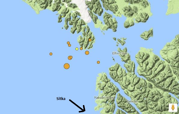 A series of earthquakes shook Southeast Alaska Monday afternoon into Tuesday morning. The epicenter of the quakes was located off the coast of Elfin Cove, 90 miles north of Sitka.