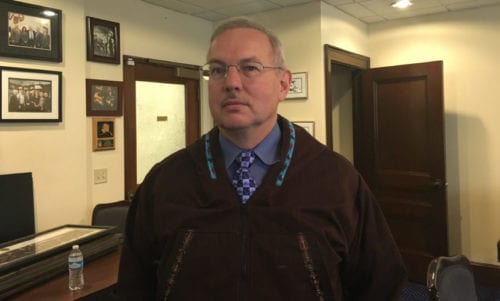 Rep. Bryce Edgmon was in his office shortly before being sworn in as the first Alaska House speaker of Alaska Native heritage. (Photo by Andrew Kitchenman/KTOO and APRN)