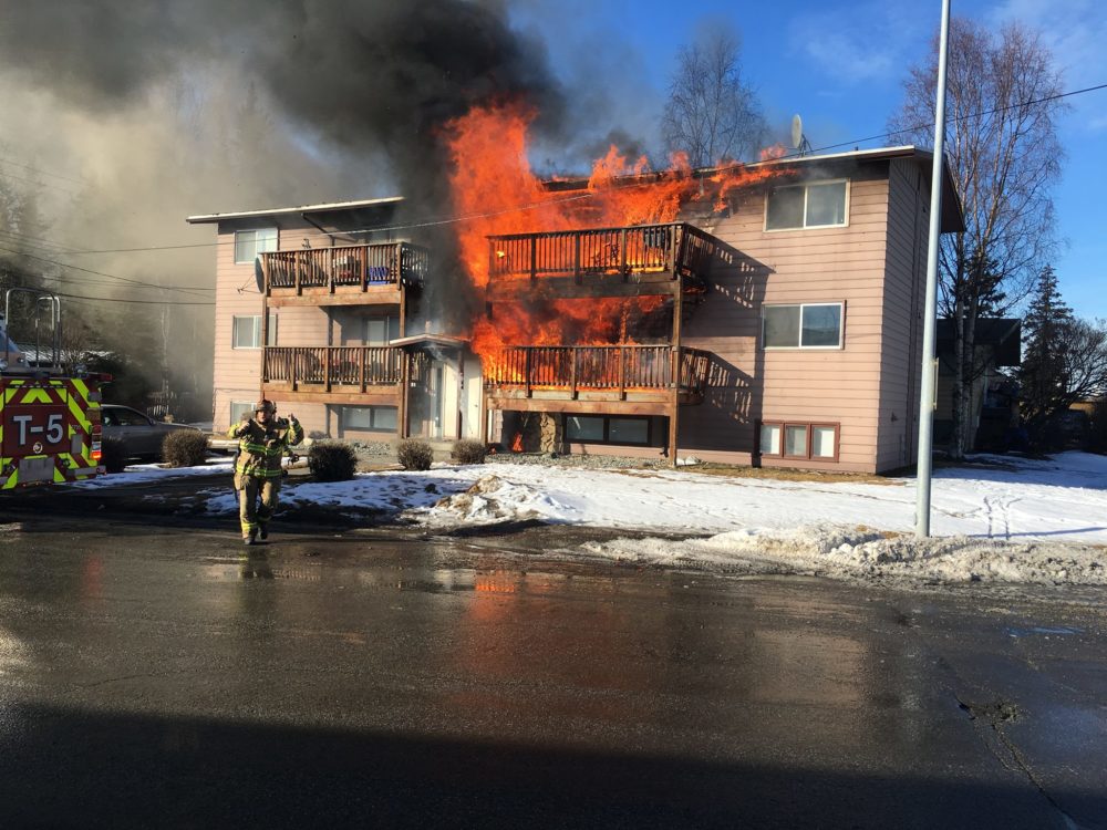 Sitka basketball players helped 11 occupants of this Anchorage six-plex escape the blaze. (Andy Lee photo)