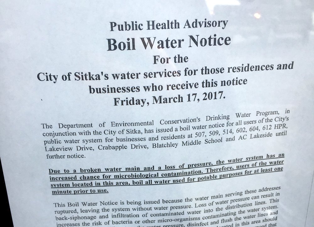 The boil water notice, as posted on the door of City Hall on Saturday (1-18-17). Because it was so localized, the notice was hand-delivered to residents. (KCAW photo/Kwong)