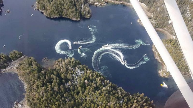 I should add, there’s no fishery taking place today. But if there were, it would be drama of horsepower and white water – with planes clustering overhead and seiners competing down below, everyone chasing the same mass of fish. What you’re hearing is some video footage from Wednesday’s fishery. As a spotter pilot, Foode would help his two boats set their net. He’s like a conductor – miles from the orchestra – and can easily get lost in the moment.