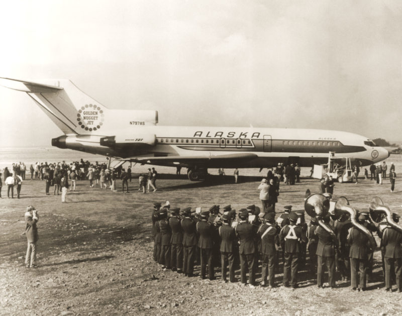 On Mar. 29, 1967 the first Alaska Airlines jet landed on Sitka’s gravel runway. (Photo courtesy of the Sitka History Museum)