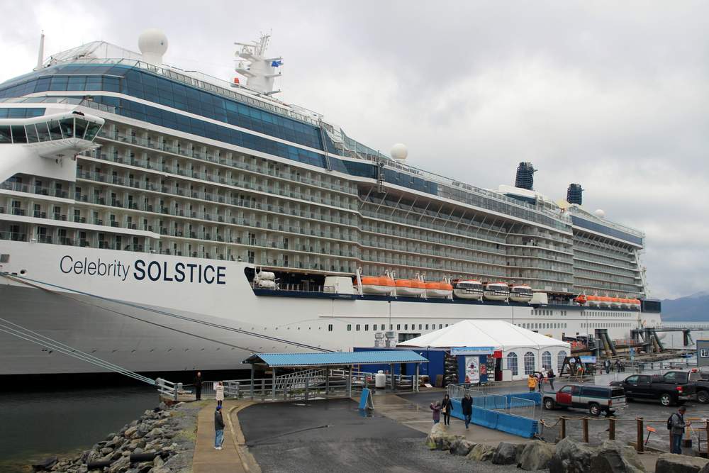 This is the inaugural visit for the Solstice, which has a passenger capacity of 2850. The Solstice is not scheduled to visit Sitka again this season. (Emily Kwong/KCAW photo)
