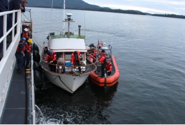 The new fast response cutter John McCormick responded to a call from the Viking Queen, which had lost power at anchor about 50 miles southwest of Kake. The John McCormick’s small boat crew took the Viking Queen under tow and brought it to deeper water. The tow was transferred to the John McCormick for the trip to Kake.