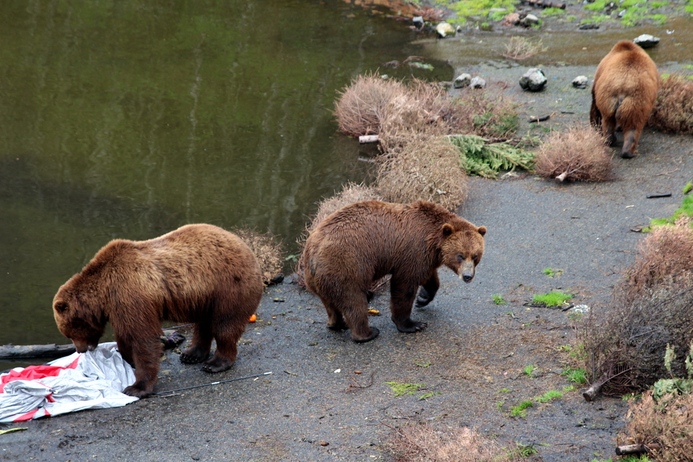 A man escaped uninjured after a brown bear tore his tent in Sitka early Saturday morning (8-12-17).