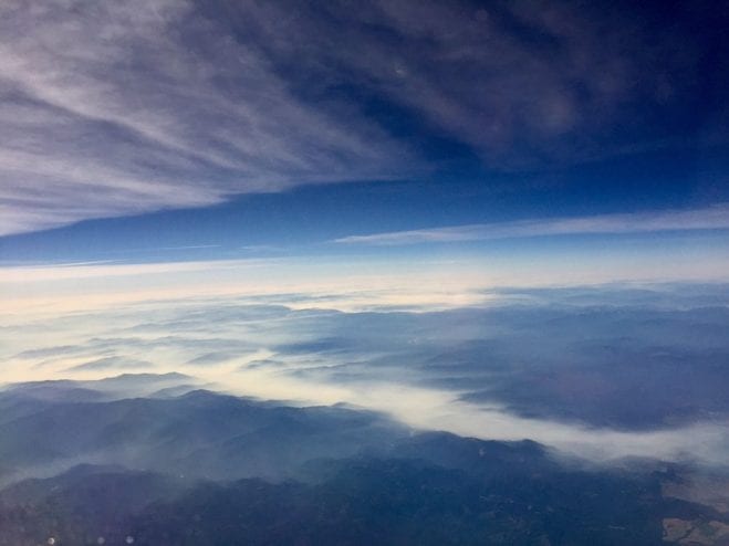 “We actually sat in the front seat on the right side of the plane. We were looking south as we flew east, looking right at the eclipse. And it was so cute because the flight attendants in the front and the back — we kept giving them our glasses, because we were giving them the play-by-play. So we’d give them the glasses and get up and move, and little by little all the people on the plane who would look up looking interested, and we’re like, C’mon! So the plane was just constantly streaming up to that front seat, putting on our glasses and looking out. Because we had such a long viewing of the eclipse. I couldn’t believe it. It was consistent across the 3-and-a-half hours of the flight. We had the eclipse the whole way.”