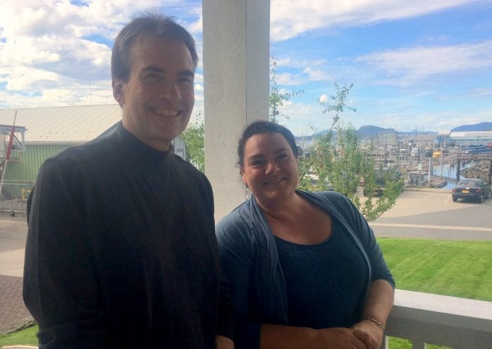 Alaska Bar Association president Darrel Gardner (l.) and pro bono director Krista Scully visited Sitka on a swing through Southeast this week. According to Scully, one limiting factor in the state’s ability to provide legal services for low-income residents: Alaska has no law school. “Law students play a really big part in Access to Justice,” she says. “They create clinics and help people in a way that we don’t have in Alaska.” (KCAW photo/Robert Woolsey)