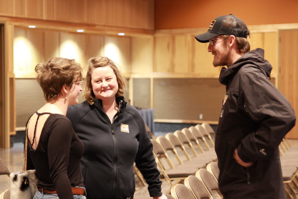 Incumbent Steven Eisenbeisz, pictured right, will serve another term on the Sitka Assembly. He gained 1030 votes, according to unofficial election results. He stands alongside his wife Ashley Eisenbeisz and write-in candidate Kitty Sopow. (Emily Kwong/KCAW photo)