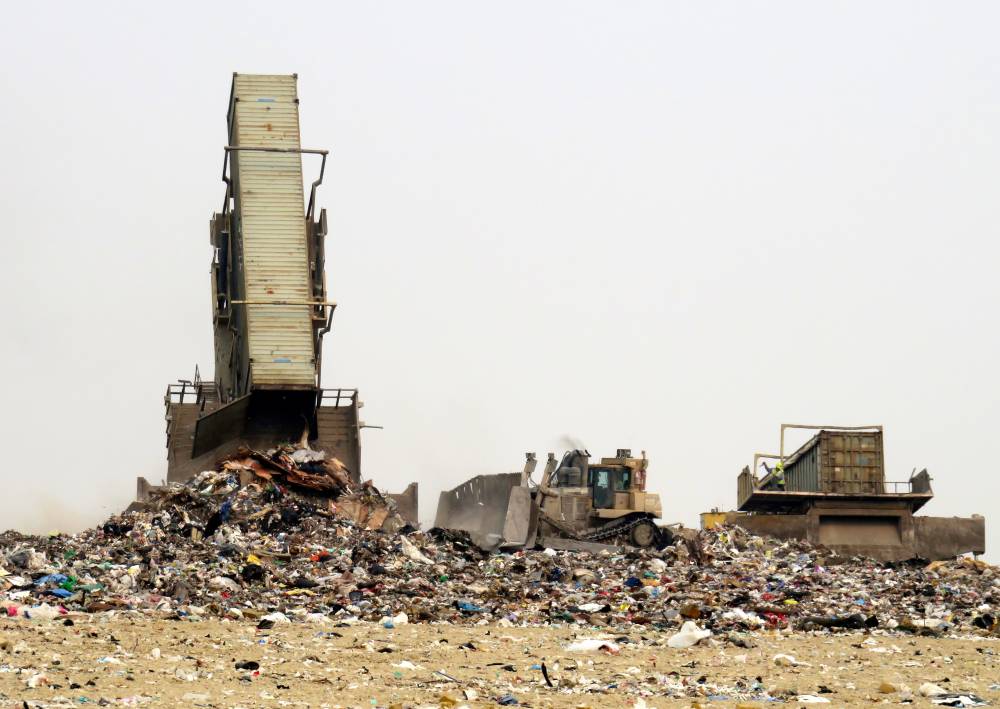 One last truck ride shuttles the garbage containers a short distance uphill to the landfill, where the trash is finally tipped out, compacted and buried.