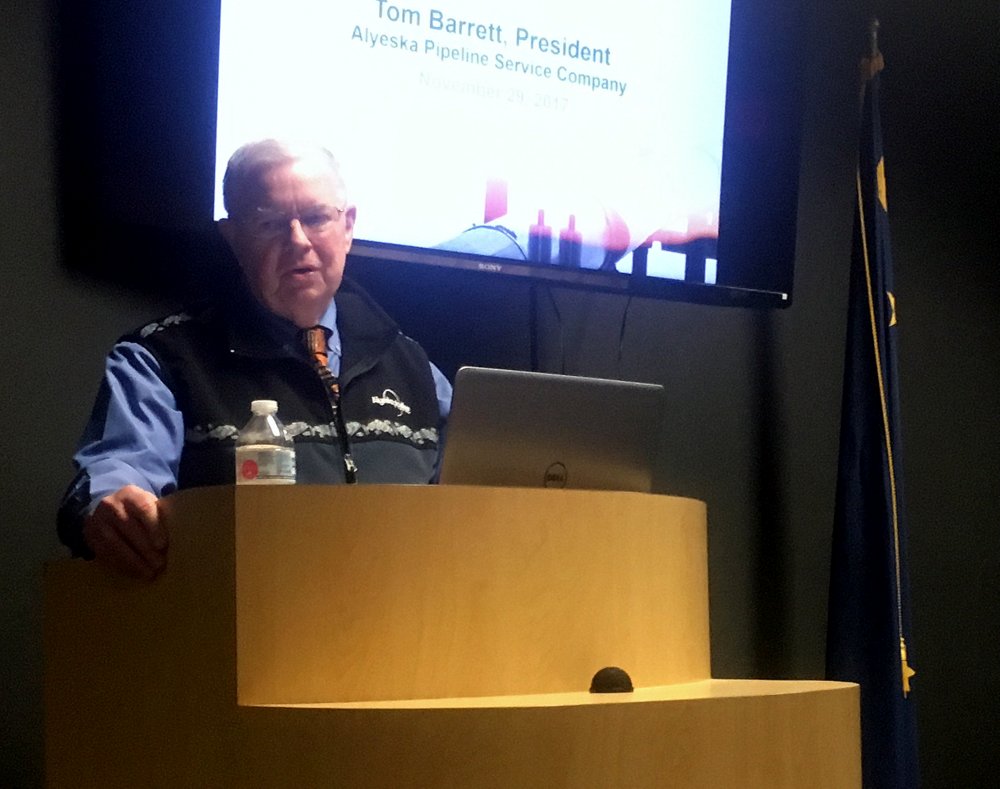 Barrett is the president of Alyeska Pipeline Services Company. He spoke to the Sitka Chamber of Commerce this week (11-29-17).