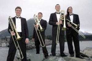 Before The Holiday Brass became an 11-piece ensemble to open the Sitka Performing Arts Center in 2008, it was a quartet in Sitka’s Centennial Building. This photo from the 2005 show features Don Immel, Nathaiel Dickey, Roger Schmidt and Wade Demmert on trombones. (Wade Demmert photo)