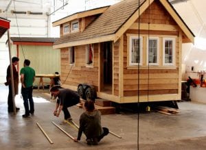 Even without interior cabinetry and finishes, the Tongass Tiny Home more closely resembles a conventional house than a trailer. And although it’s portable, no one’s going to be taking this building on a camping trip. (KCAW photo/Robert Woolsey)