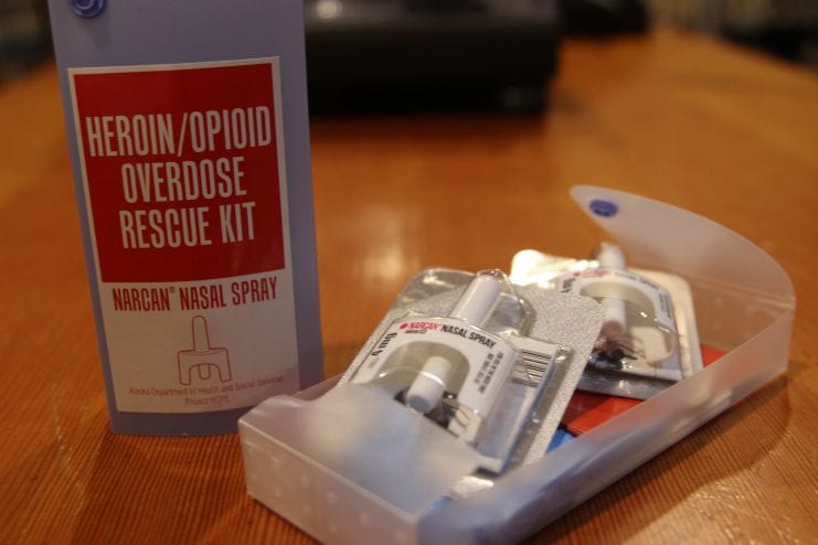 The state has launched a program to distribute thousands of opioid overdose rescue kits, like this one, in local communities. (Emily Kwong/KCAW photo)
