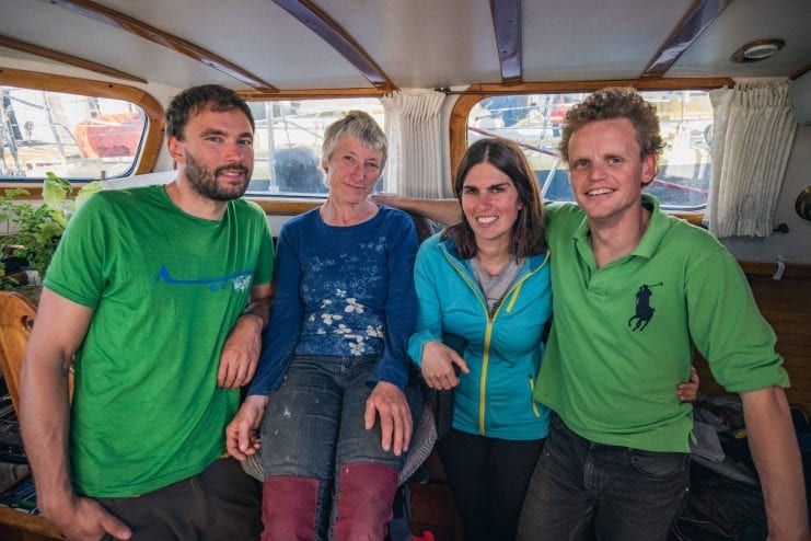 Skippers Jaap Van Rijckevorsel, Frances Brann, Krystina Scheller and Erik de Jong. They are among ten crew members on Arctic Mission, running two polar yachts. (Photo by Conor McDonell)