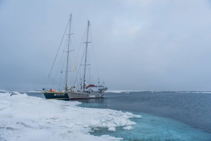 The Snow Dragon II and Bagheera sailing in the Arctic Ocean. (Photo courtesy of Arctic Mission Facebook page)