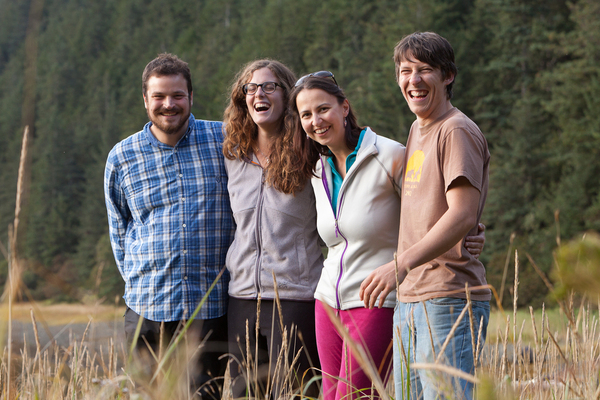 The founders of the Inian Islands Institute, who met as PhD students at Stanford University. From L to R: Aaron Strong, Lauren Oakes, Lida Teneva, and Zach Brown. (Photo courtesy of Zach Brown)